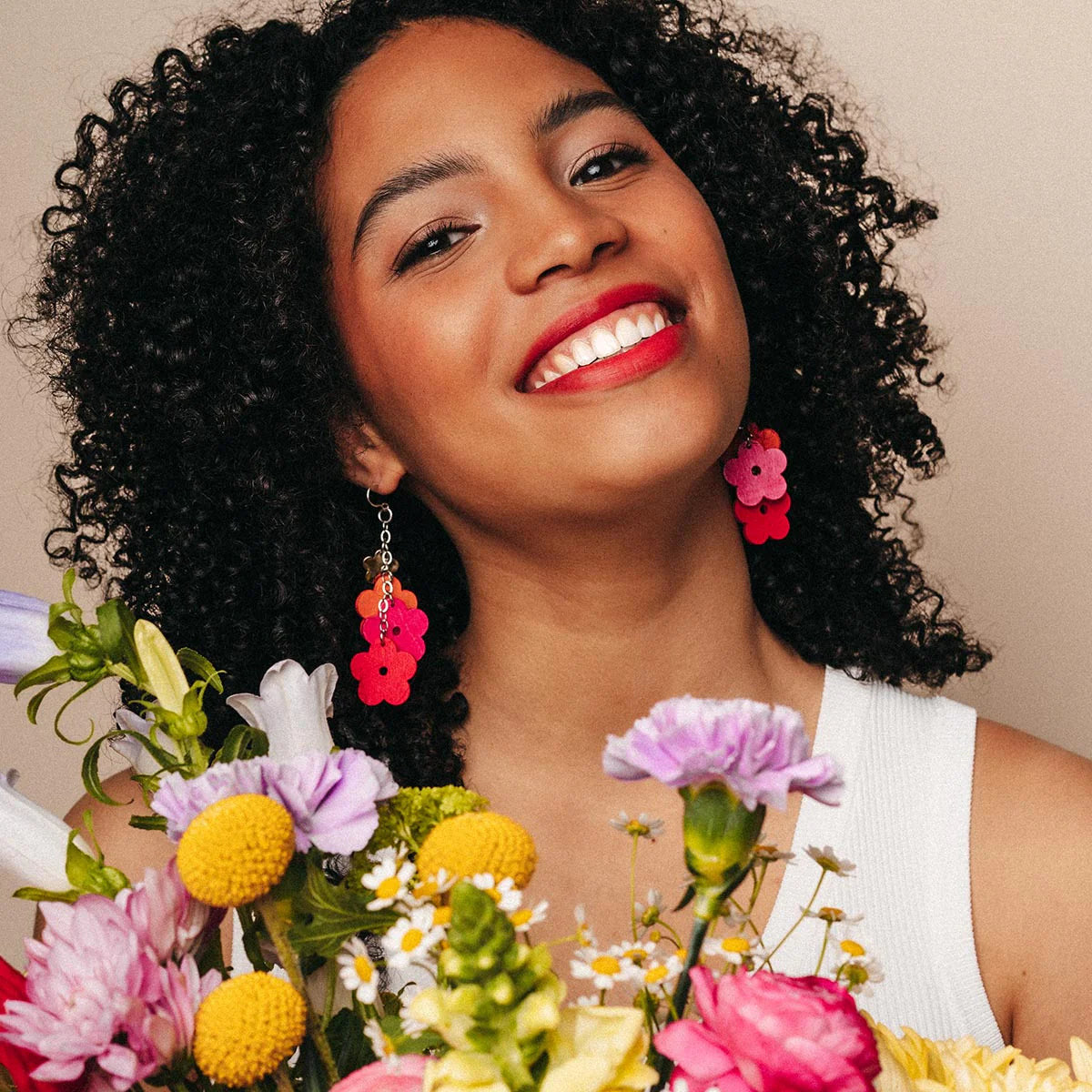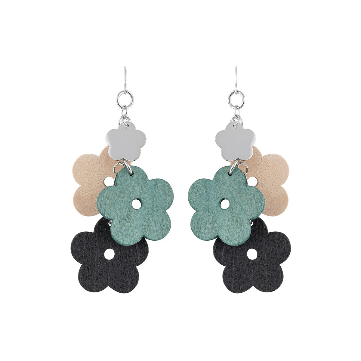 Hand-dyed Kukkaniitty earrings have wooden pieces in beautiful floral forms. They are light on the ears and easy to wear. Combine them with other lovely Aarikka collections, especially the Lemmikki collections.