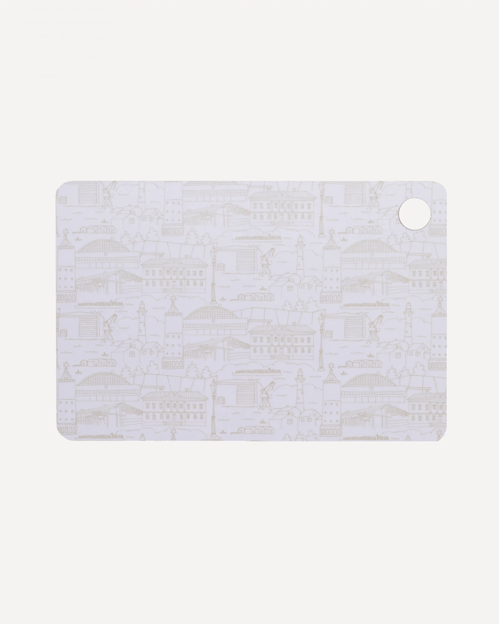Paapii’s patterned white cutting board featuring a Kokkola-themed design.
