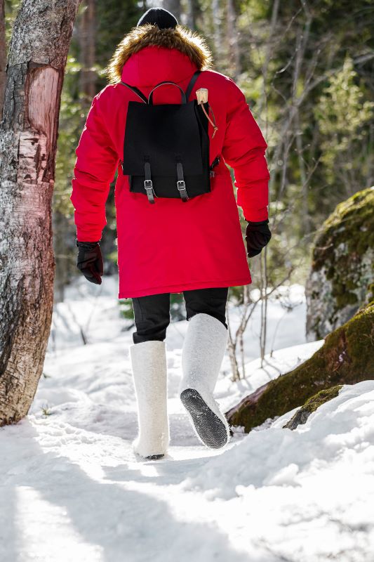 Best boots ever for the cold frozen winter weather. Handmade in Finland from 100% wool. Rubber sole that has good grip on the snow and ice. Warm, lightweight and durable.