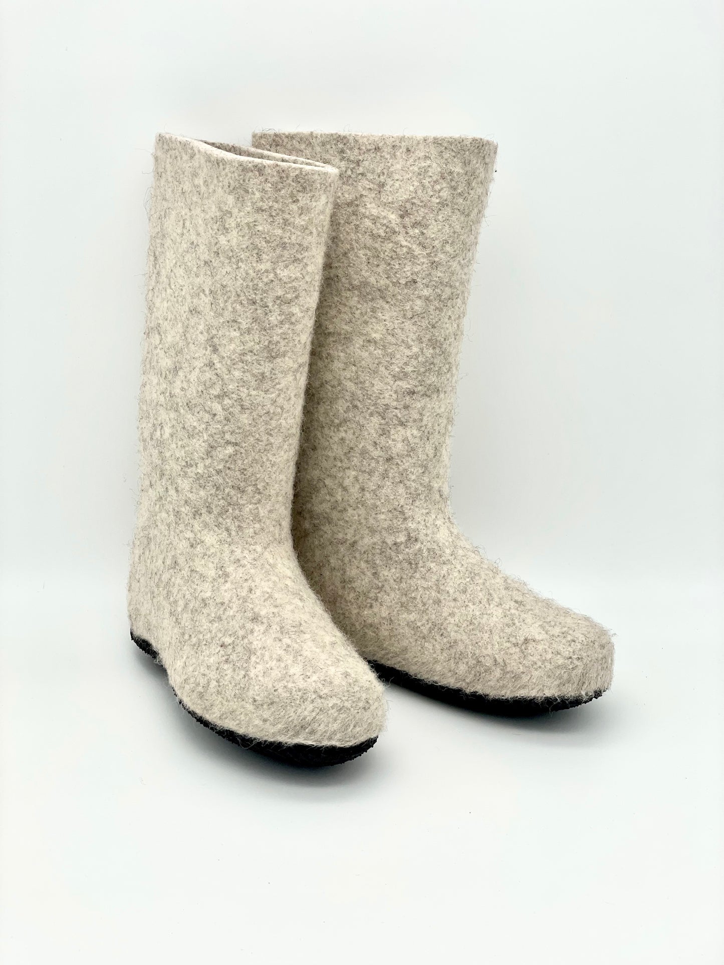 Best boots ever for the cold frozen winter weather. Handmade in Finland from 100% wool. Rubber sole that has good grip on the snow and ice. Warm, lightweight and durable.