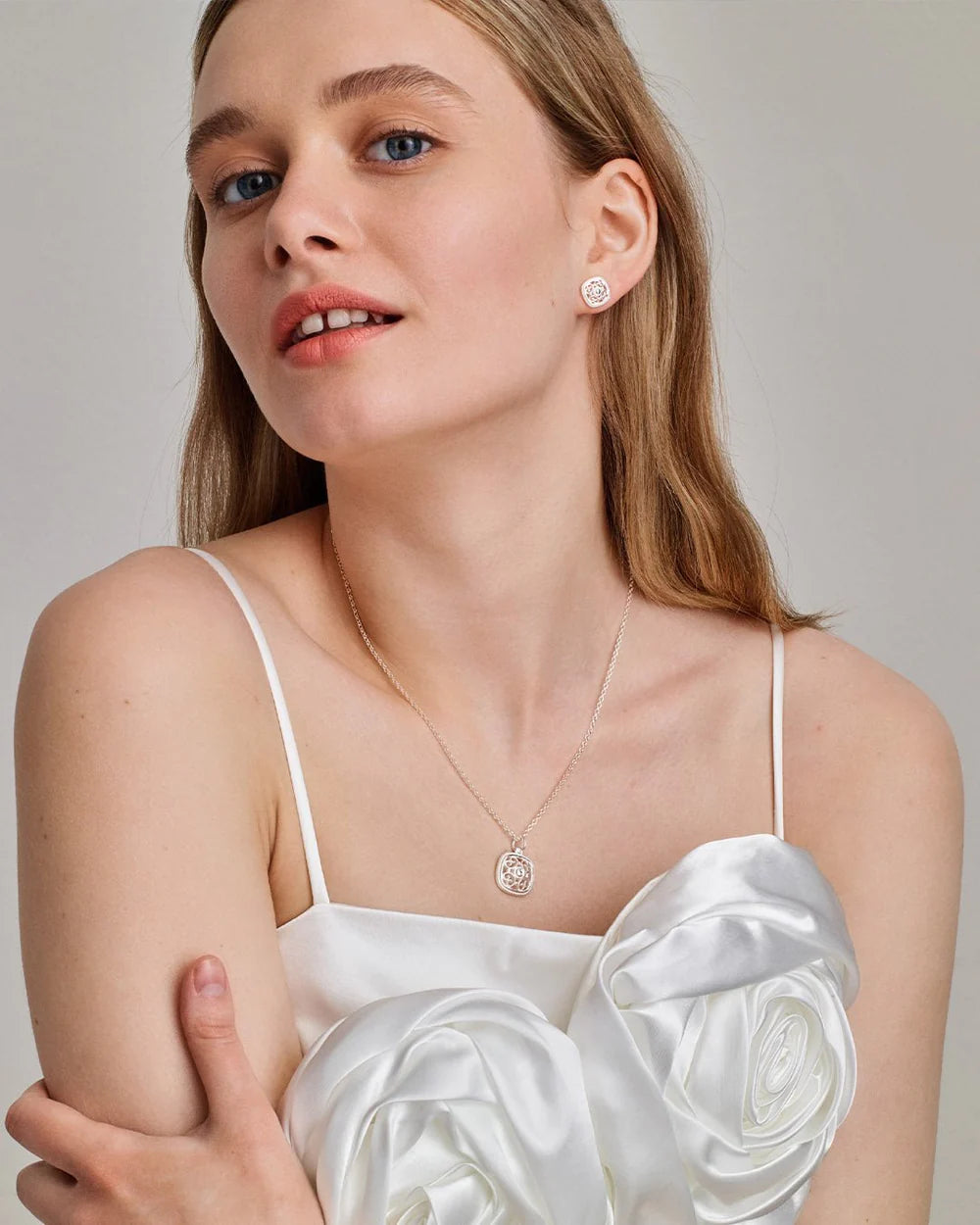 The delicate lace-like pattern of these silver earrings was inspired by an 18th century gold ring. For pierced ears.