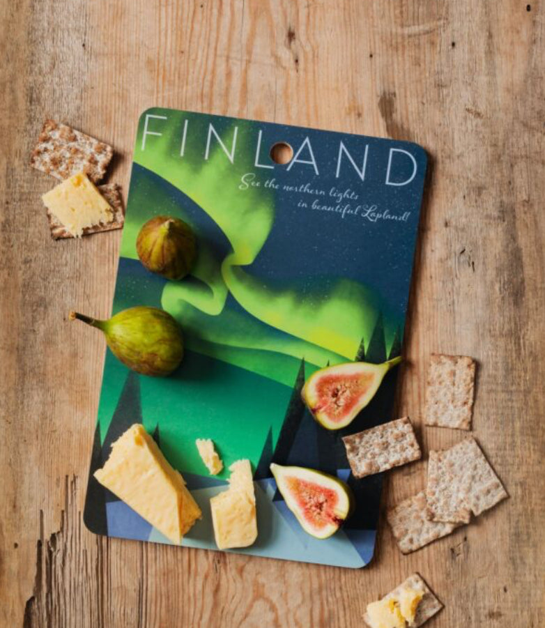 This is a laminated birch wood platter. Do enjoy fabulous northern lights with a cozy cheese platter!