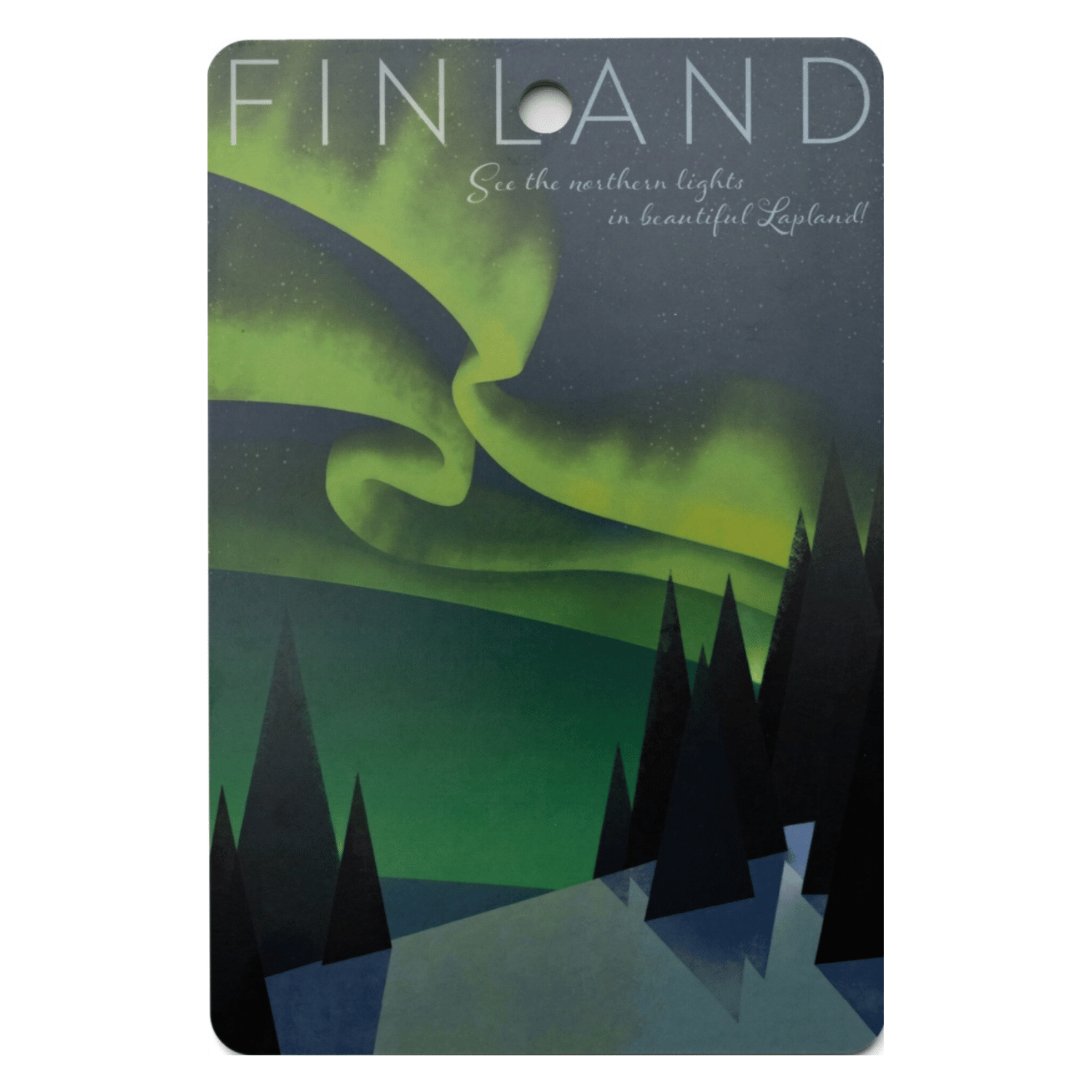 I created my Finland travel poster as an assignment for a class and wanted to recreate the feelings of majesty and awe that I found in the rich colors of the wintry landcape and northern lights.