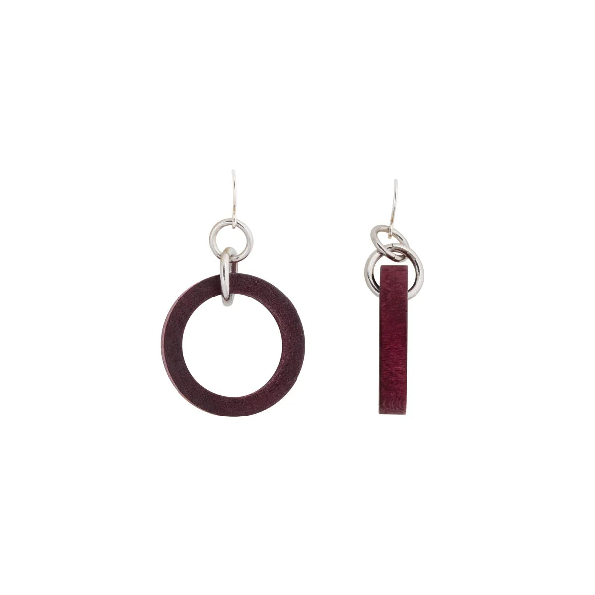 Järviruoko earrings consists of two small metal hoops with flat, wooden hoops hanging from them. The light and lively earrings move beautifully. Combine them boldly with other collections and materials.