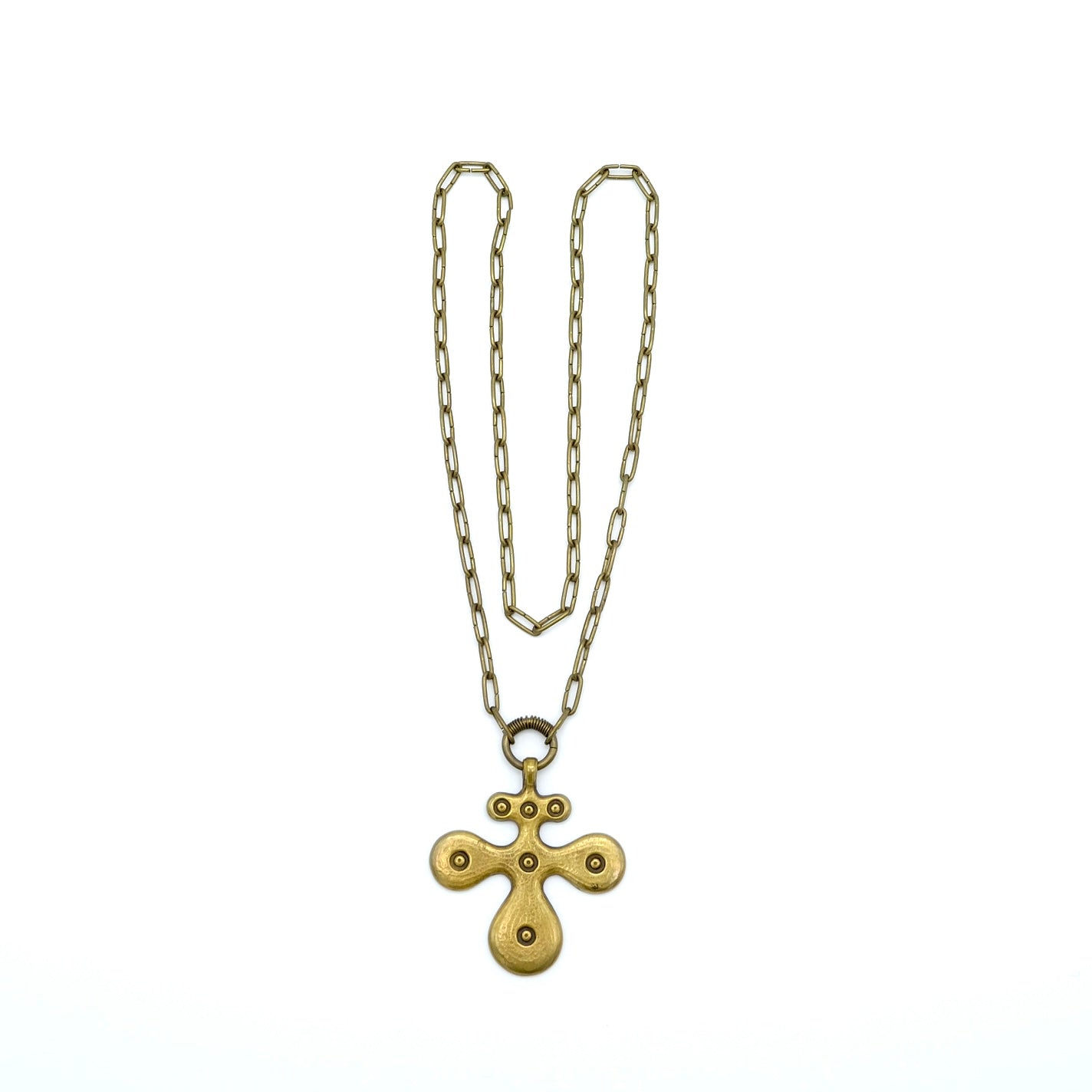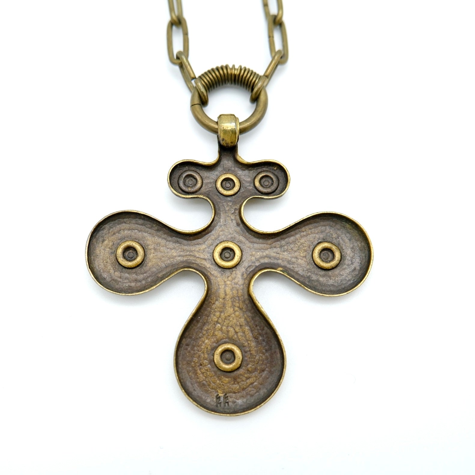 Crafted from nickel-free bronze and produced in Finland, this necklace represents Kalevala’s classic approach to archaeological replicas—simple, bold, and historically grounded. The cross features a solid, sculptural form without the layered or interlocking elements seen in Kalevala’s triple cross designs, making this a distinct and separate model.