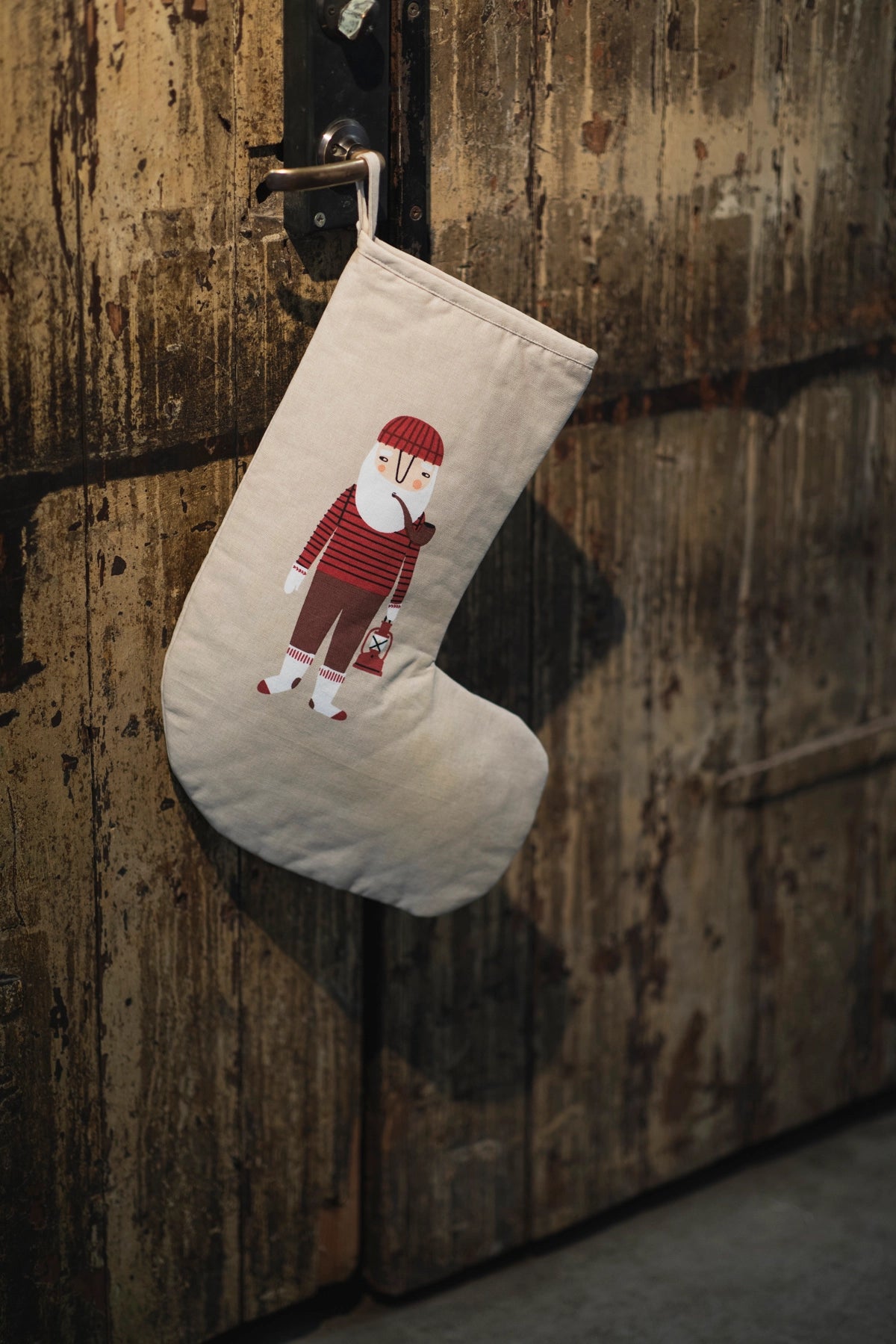 As the ice settles on the lake, Ebbot immediately gets into the Christmas spirit. He packs away his rubber boots and pea coat, combs his beard and decorates his fishing hut in colourful Christmas lights, so that the whole village lights up. Use a Christmas stocking to fill with small gifts and candy for both children and adults.