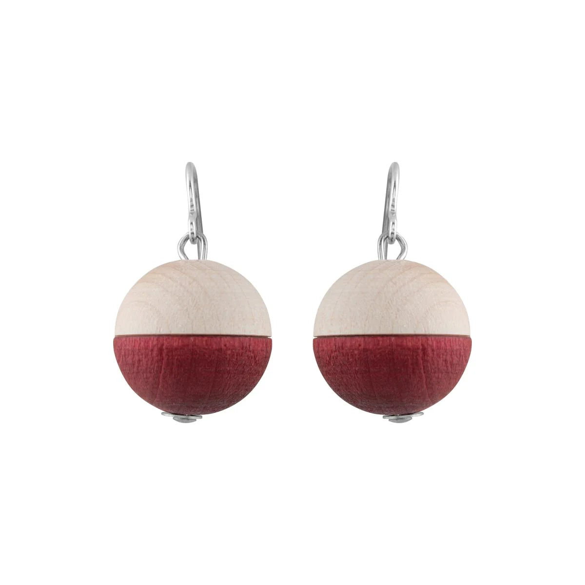 Hand-dyed Leila earrings have two wooden bead spheres of different colours that create a whole round bead. They are light to wear and easy to combine with other Aarikka jewellery collections.