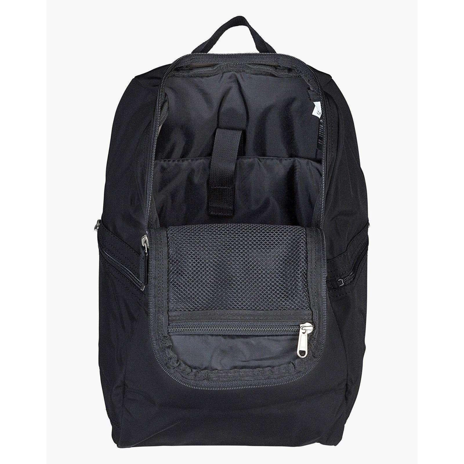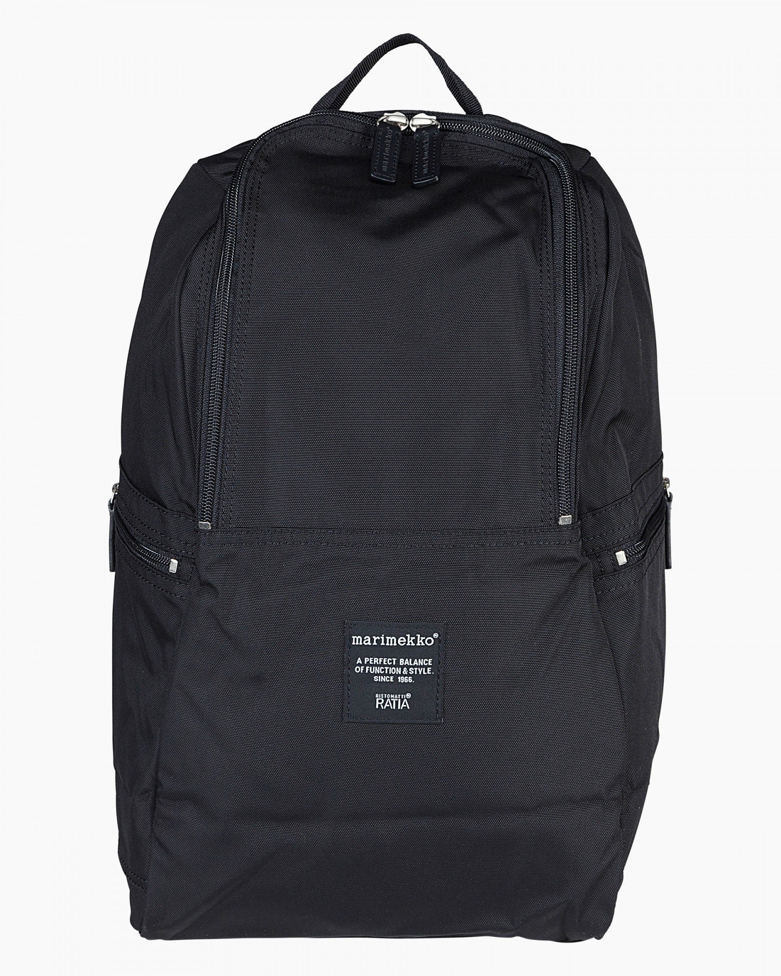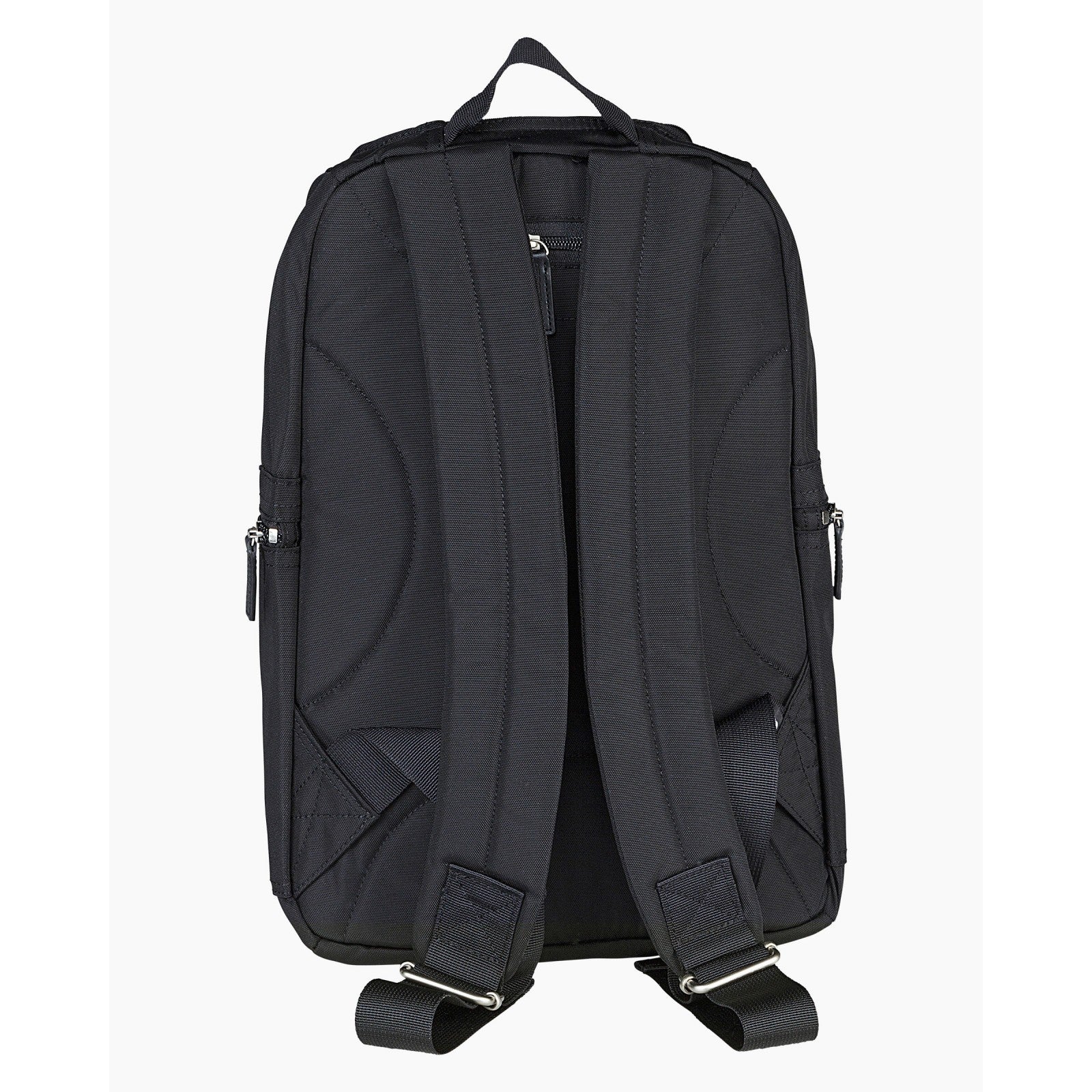 A polyamide backpack with adjustable padded shoulder straps and two exterior side zip pockets. Inside there’s a padded back slot pocket for an 11” laptop and netted pocket with a zip closure.