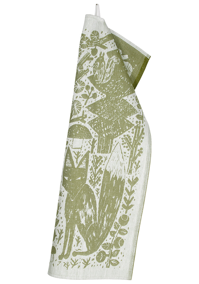 METSIKKÖ design captures the beauty of Finnish nature in a humorous light. The METSIKKÖ pattern was designed by Matti Pikkujämsä who has the distinction of being the first winner of the Illustrator of the Year award in Finland. This kitchen towel is also suitable as a hand towel.