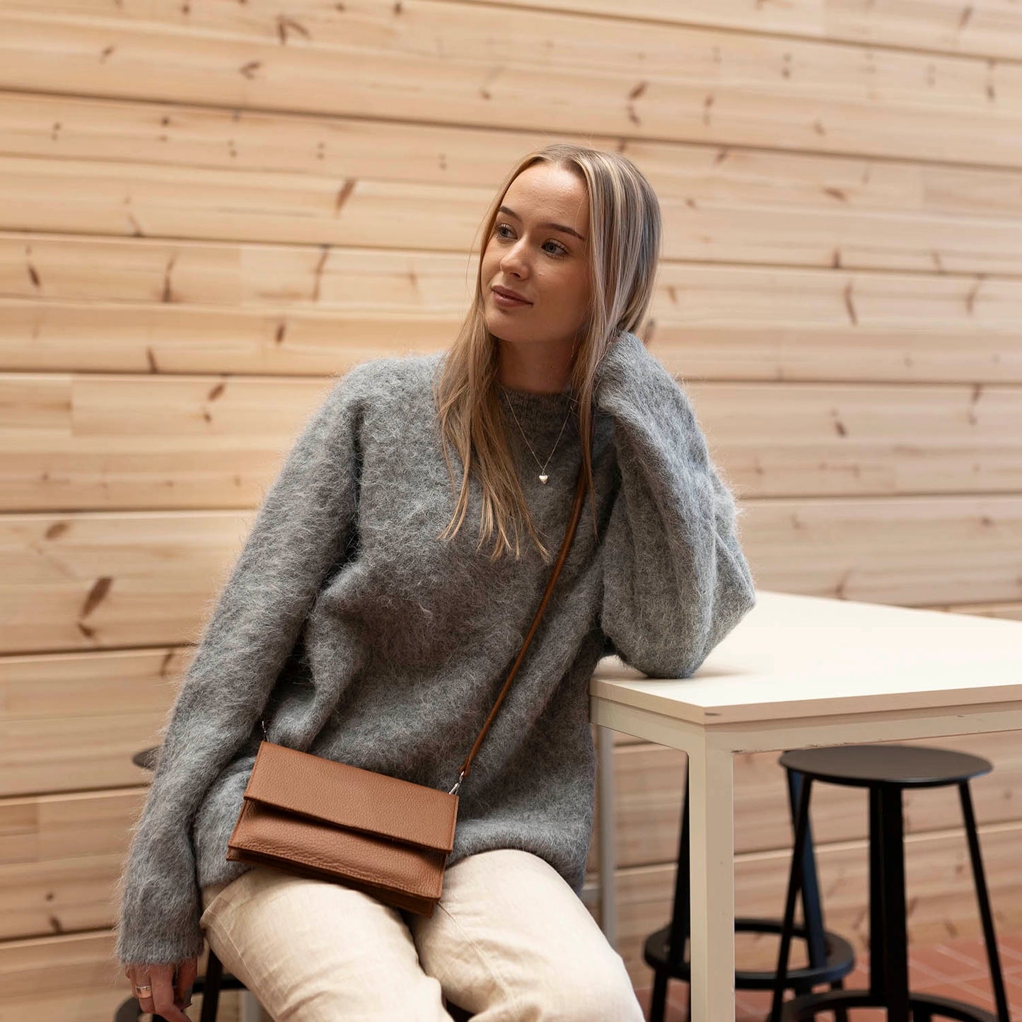 Spring's magnificent new bag! In the Tuike bag made of elk leather, there is just the right amount of space for your phone, wallet, keys, and lip balm. The Tuike bag is conveniently closed with a snap. Inside the bag, there are two larger compartments with a smaller pocket in between. The Tuike bag is versatile, minimalist, and its timeless style is perfect for more festive outfits as well. This domestically made leather bag enhances many outfits and ensures that your essentials stay with you on the go!