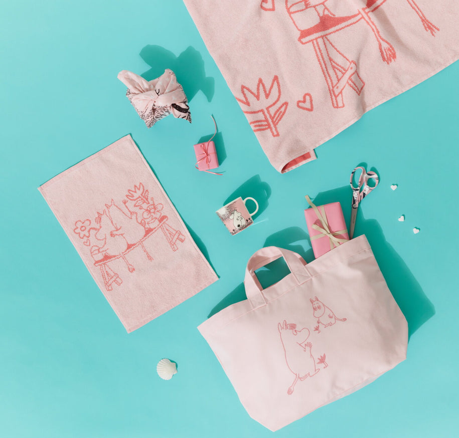 The Moomintroll hand towel by Moomin Arabia brings the magical atmosphere of Moominvalley to every Moomin fan's bathroom. Enjoy the soft coziness of the Moomin hand towel themed with love. Moomintroll and Snorkmaiden are enjoying a flower painting experience together.
