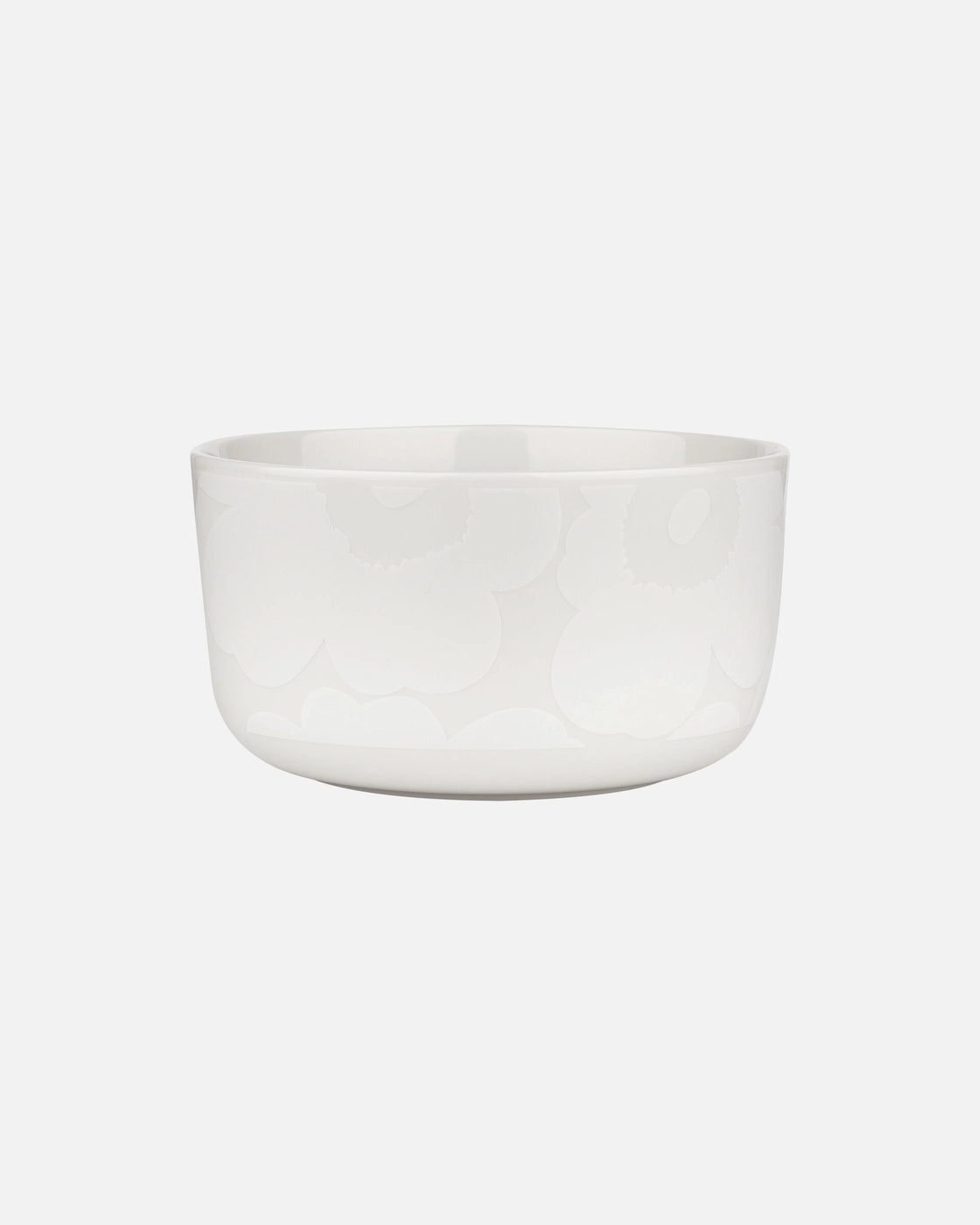 The Oiva bowl is made of white stoneware that is dishwasher, oven, microwave and freezer proof. The subtle white on white pattern adds a bit of whimsy to the elegance of plain white dishes.
