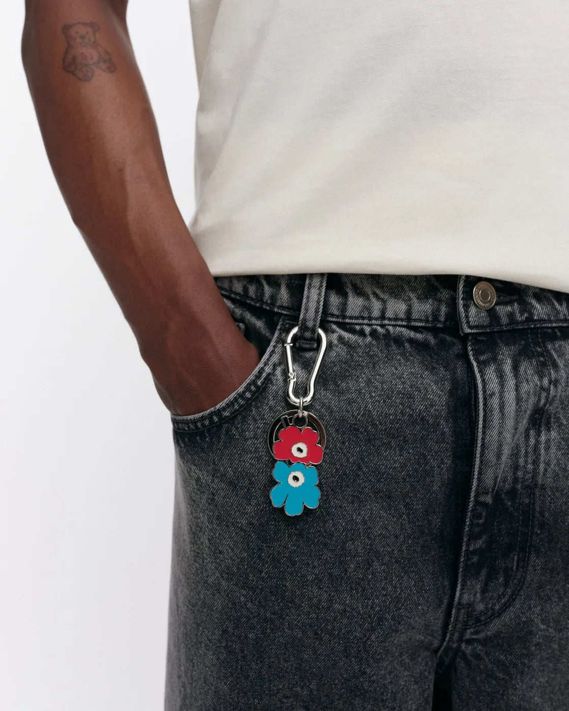 The Puhallus key chain features the double Unikko flower, a key ring, and a clip.