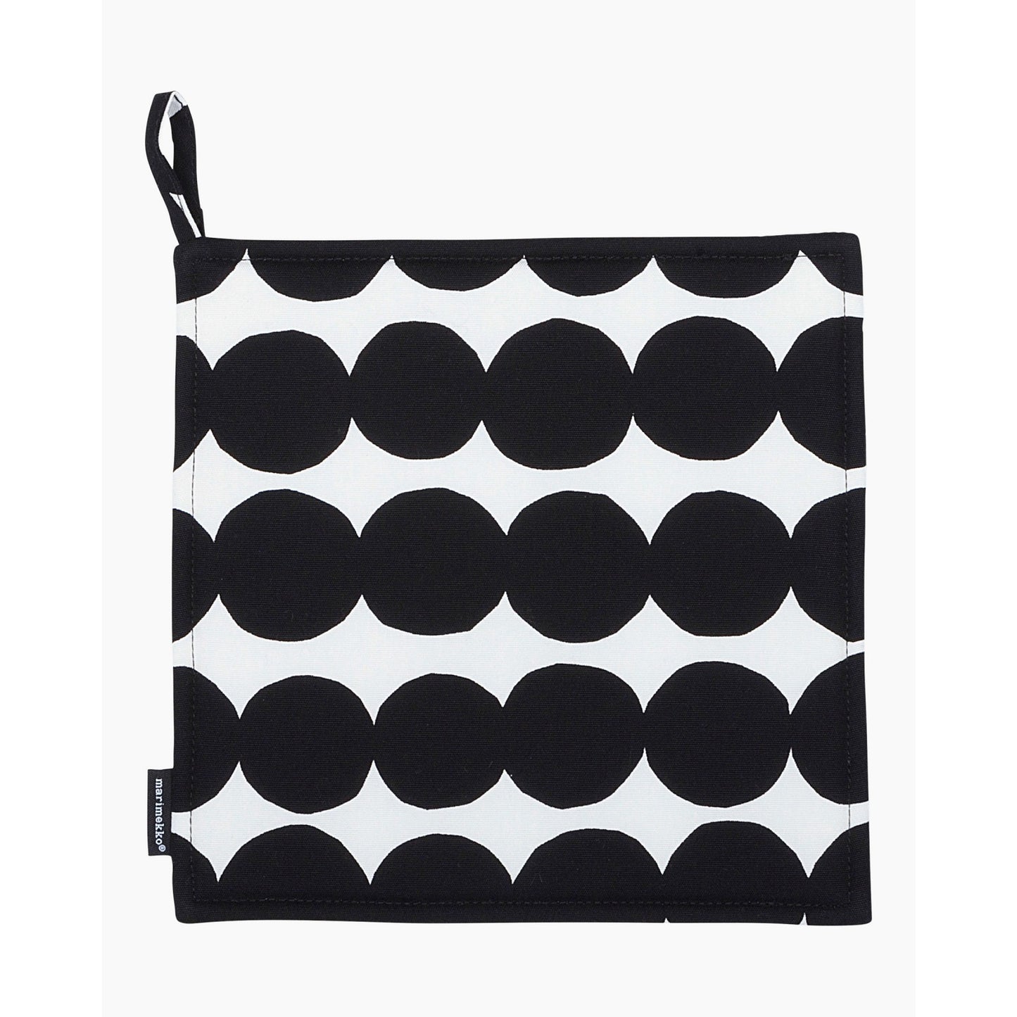 This heavyweight cotton potholder with a hanging loop features the Räsymatto print.