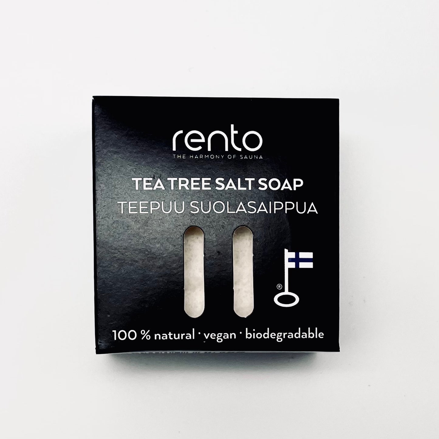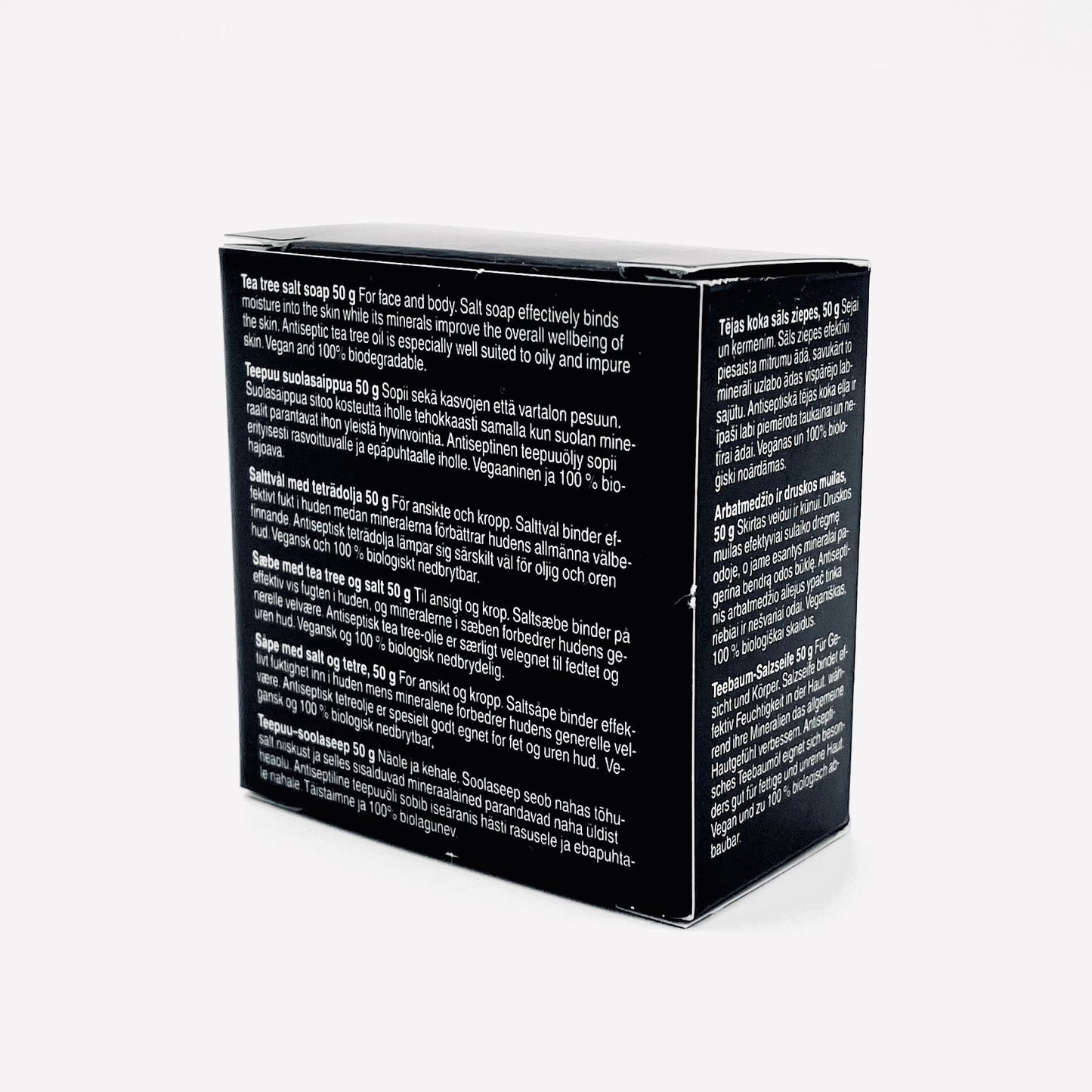 This Finnish-made Tea Tree Salt Soap Bar is a gentle, fragrance-free cleansing soap with natural antibacterial properties. Enriched with mineral-rich salt, it provides light exfoliation while nourishing the skin. Completely vegan and 100% biodegradable, this soap is ideal for sensitive skin and everyday use. Proudly carrying the Finnish Key Flag Symbol, it represents high-quality Finnish craftsmanship.