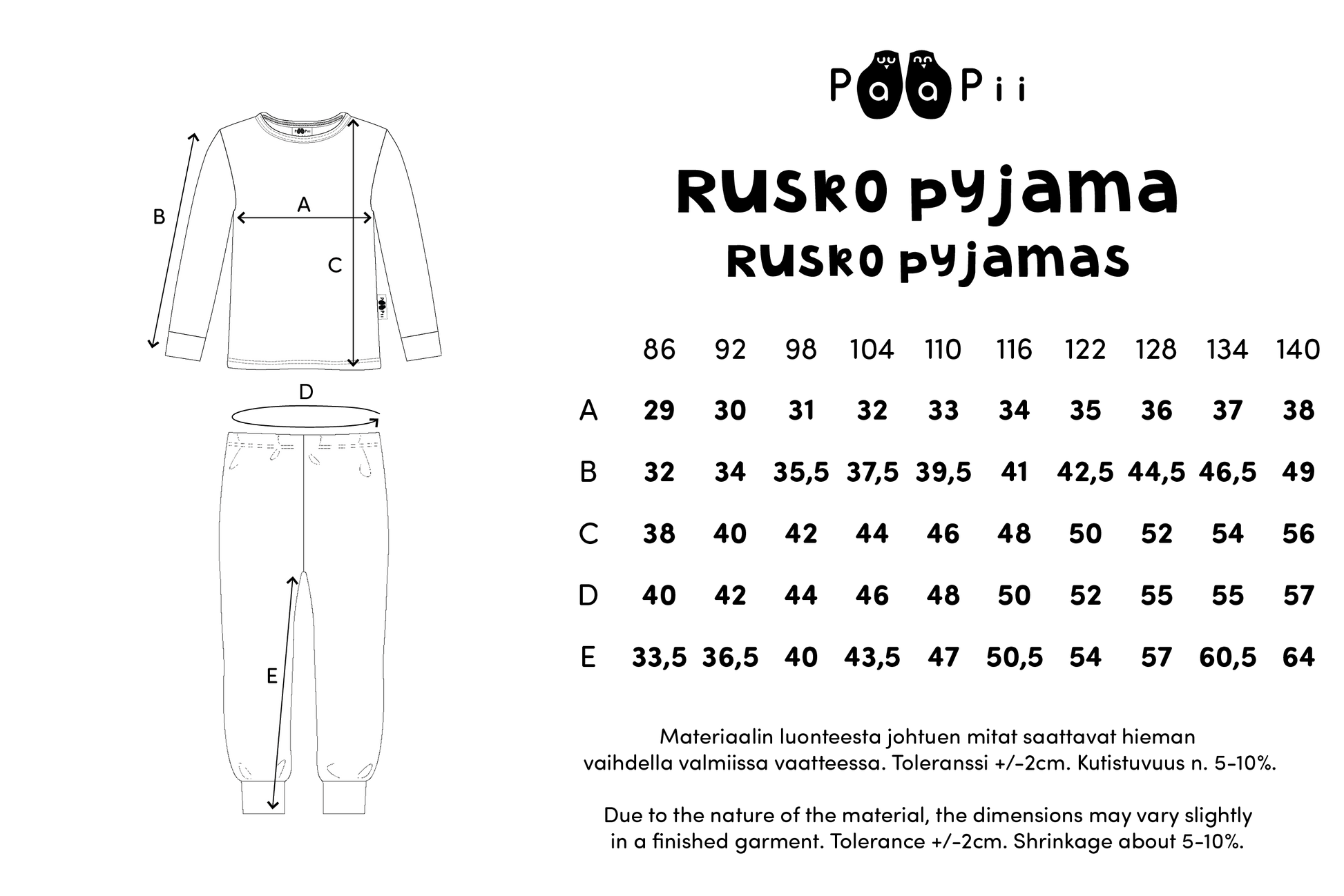 Finnish-made children's clothing is a sustainable and stylish choice for your child's wardrobe. The Rusko pajamas is sewn with love and solar energy in Paapii's own sewing factory in Kokkola.
