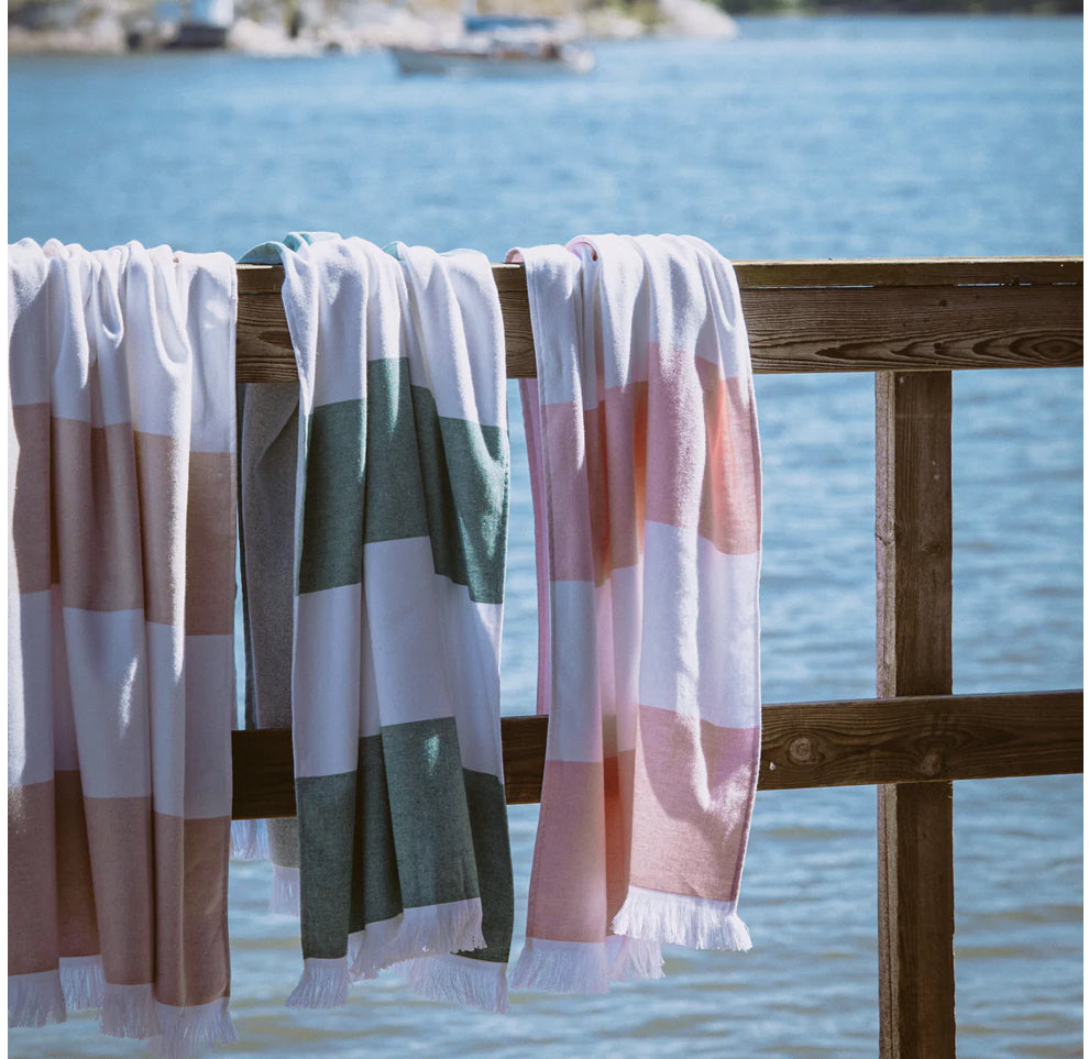 Satama beach towel is a lightweight, thin cotton towel, perfect for beach holidays. It can just as well be used as an ordinary towel in the bathroom and sauna. The towel takes up little space, so it's handy to pack with you when travelling, or carry it in the beach bag or gym bag.