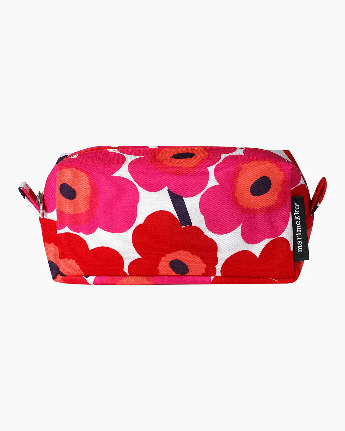 The small rectangular Tiise cosmetic bag is made of cotton linen blend and it is decorated with the Mini Unikko pattern. The bag has a zipper closure.