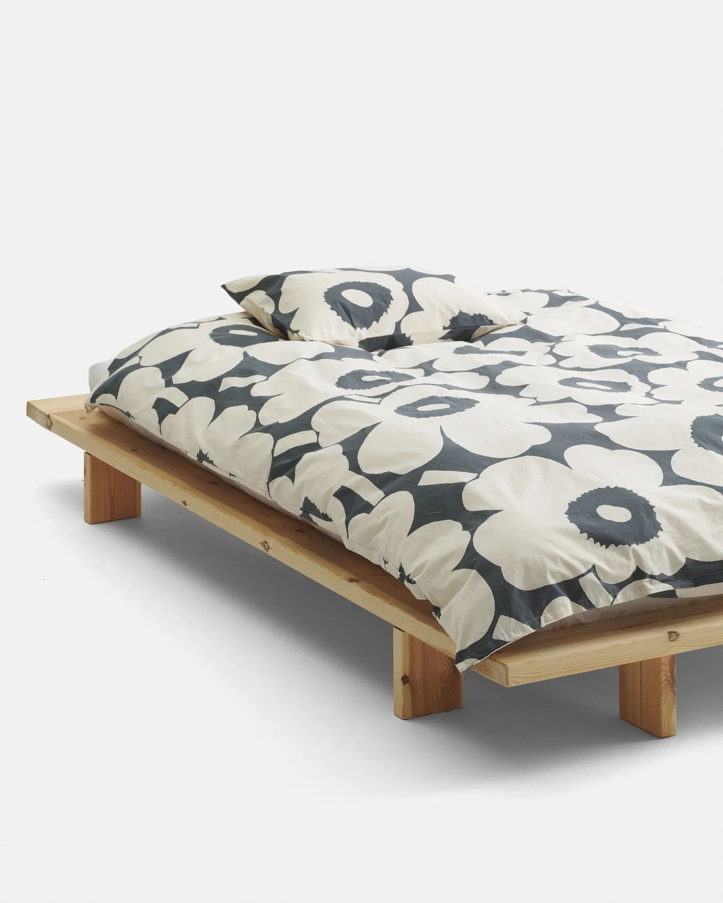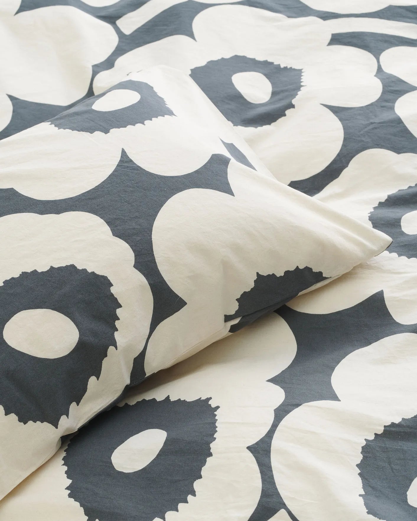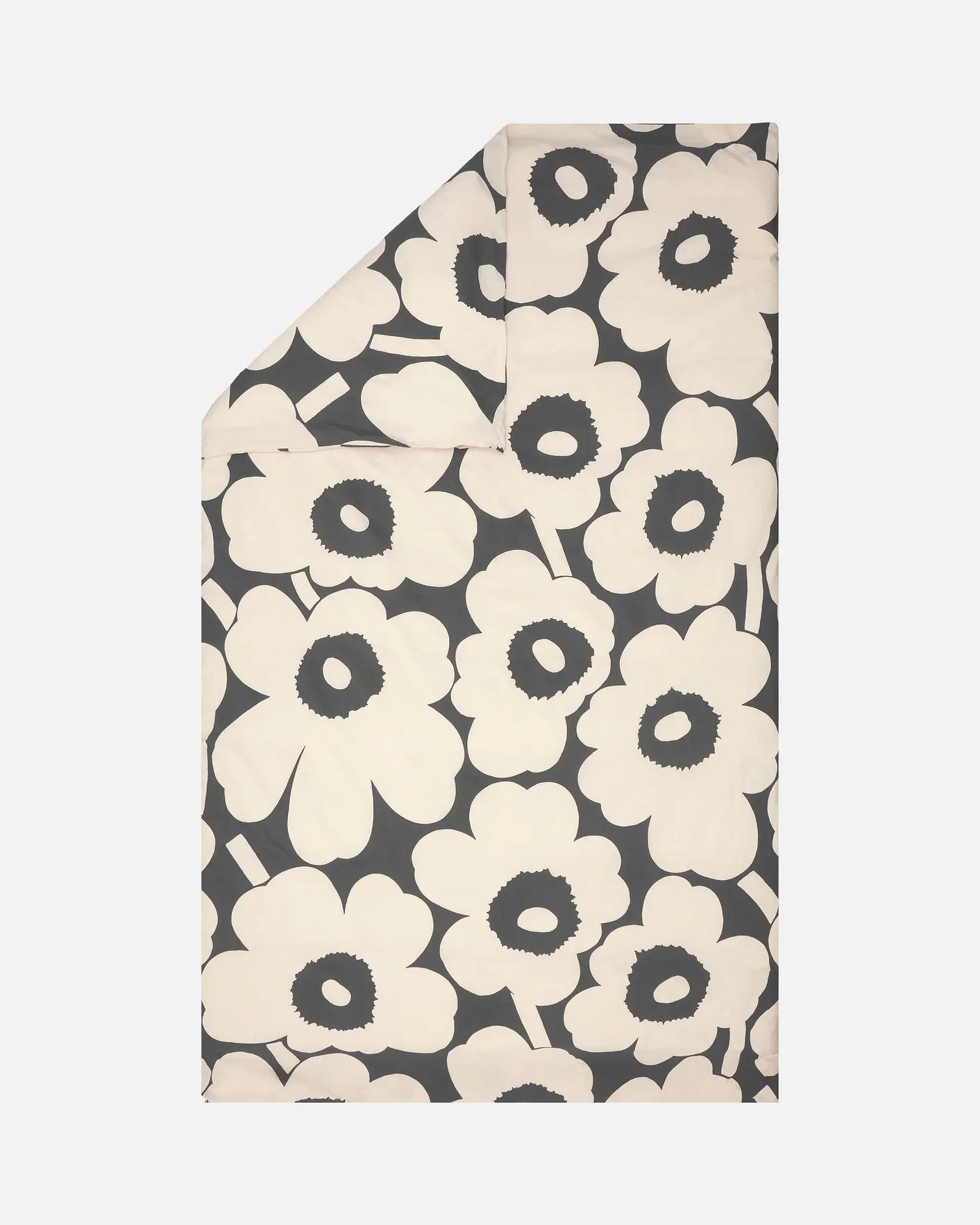 Made from unbleached cotton that has been washed for a soft finish, this duvet cover features the Unikko pattern. The duvet cover has hand openings at the top corners that make changing the covers easier. The duvet cover has a thread count of 150.